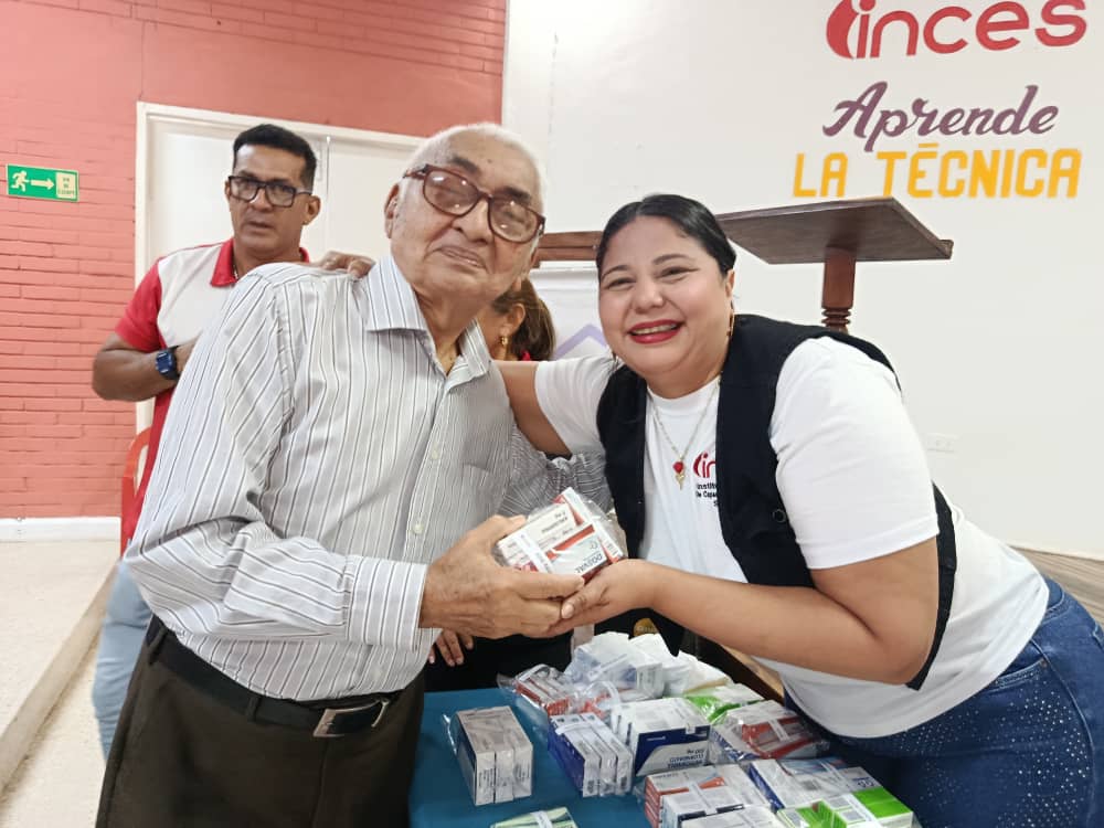 En el auditorio de la Gerencia Regional del Inces en Apure se realizó la entrega de medicamentos a 59 trabajadores activos y jubilados. Este acto de protección y apoyo se llevó a cabo gracias a las políticas del presidente Nicolás Maduro, el ministro del Poder Popular para el Proceso Social del Trabajo Eduardo Piñate y el presidente del Inces Wuikelman Ángel Paredes, un beneficio en materia de salud que solo es posible en revolución.
