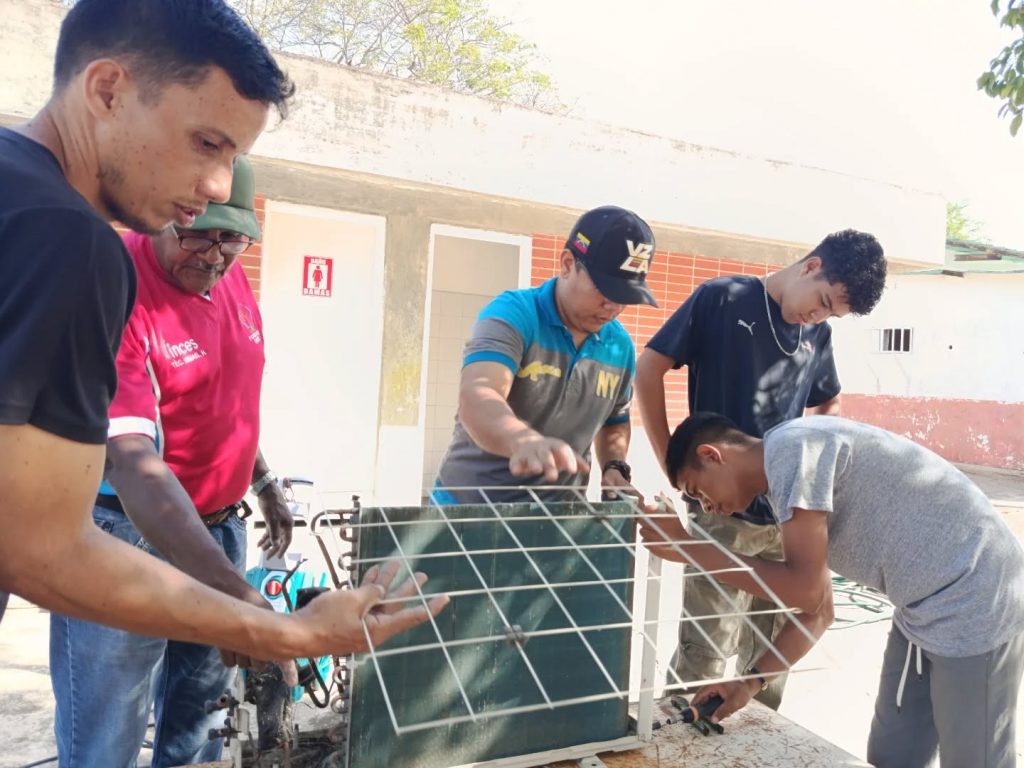 Durante la formación, los participantes tuvieron la oportunidad de desarmar y limpiar un aire acondicionado tipo Split de 12.000 BTU, además, de realizar su diagnóstico y mantenimiento integral, lo cual incluyó la revisión de componentes esenciales. Luego de esto reensamblaron el equipo.