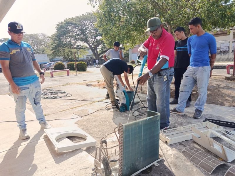 Durante la formación, los participantes tuvieron la oportunidad de desarmar y limpiar un aire acondicionado tipo Split de 12.000 BTU, además, de realizar su diagnóstico y mantenimiento integral, lo cual incluyó la revisión de componentes esenciales. Luego de esto reensamblaron el equipo.