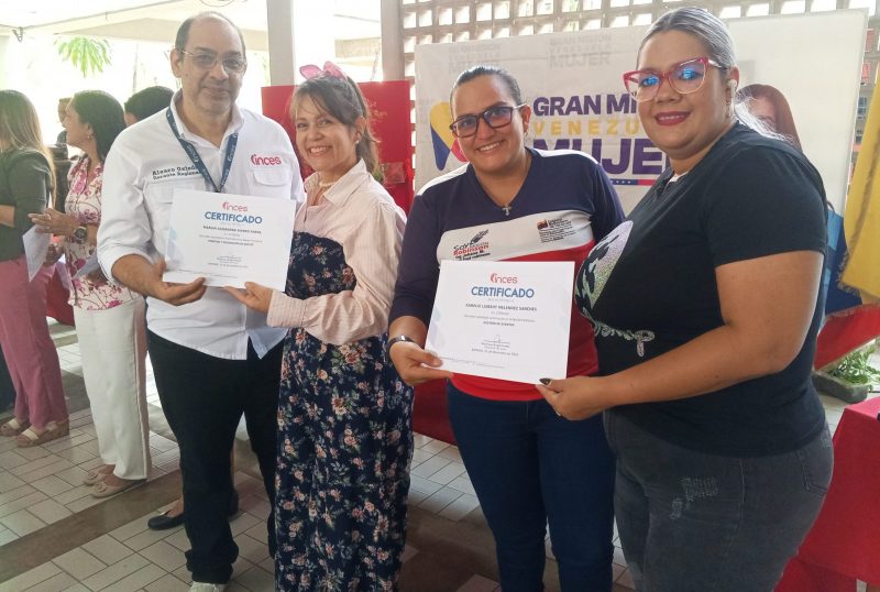 En un significativo acto, el gerente regional del Inces Barinas, Alvaro Oviedo, y la secretaria estadal del vértice 2, de la Gran Misión Venezuela Mujer (GMVM), Egly Mora, entregaron 390 certificados a mujeres que transformaron su talento en capacidades técnicas.