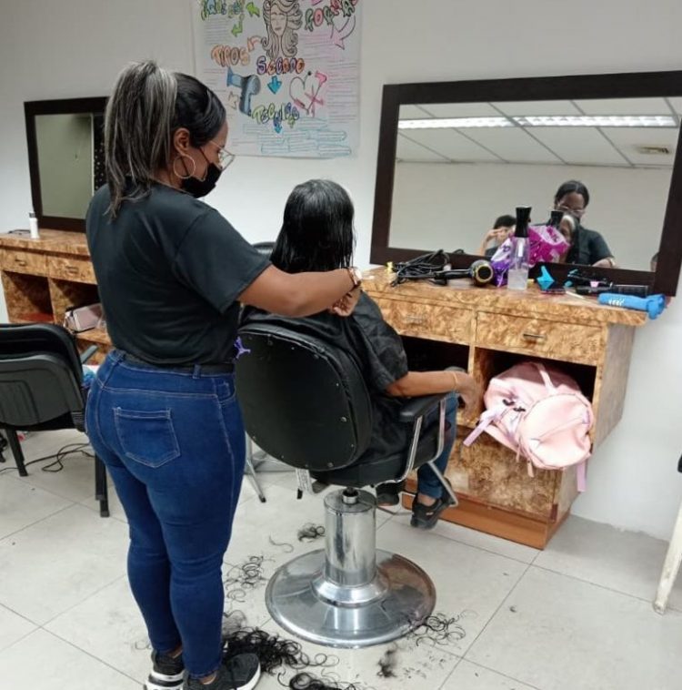Los participantes son formados y aprenden el sacado, corte, planchado, aplicación de químicos para el cabello, entre otros servicios.